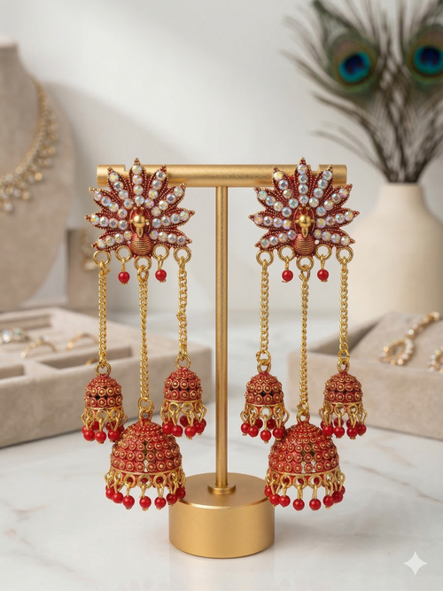 Colorful Beaded Jhumka Earrings - Oxidised Designer