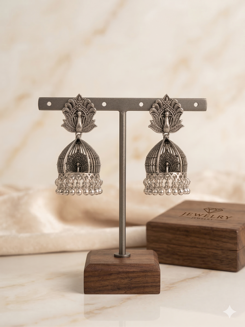 Bahubali Oxidised Silver Earrings - Traditional Design